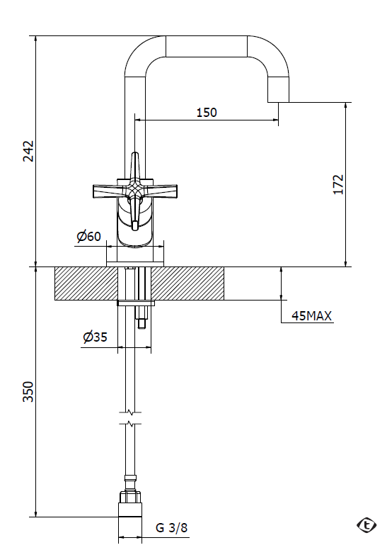 WTS FLAP CROSS MONOFORO LAVABO MF C/SCATTO ATTACCO UNIVERSALE CROMATO